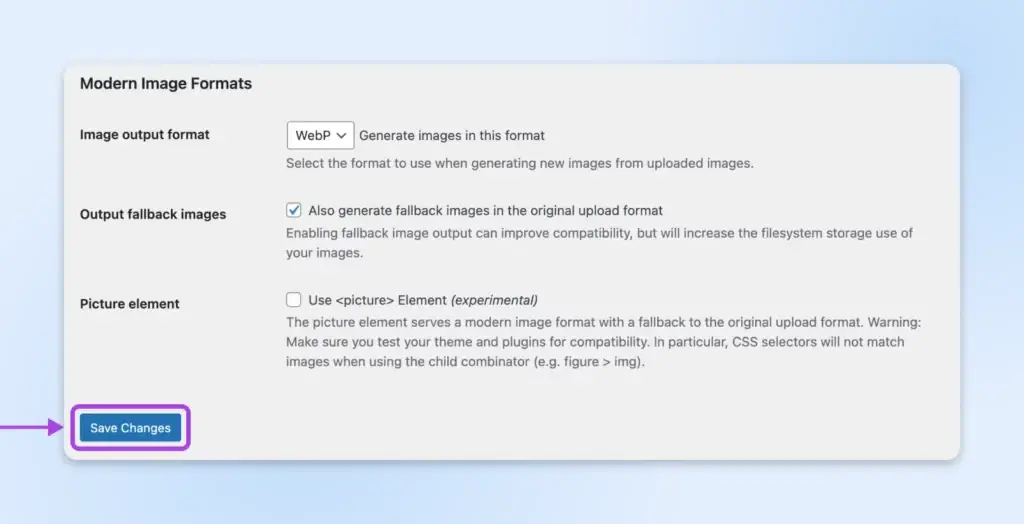 提醒:如果您想使用 WebP 和 AVIF 文件格式,您的主机环境也必须支持这些格式。如果您不确定是否支持,请联系您的供应商!