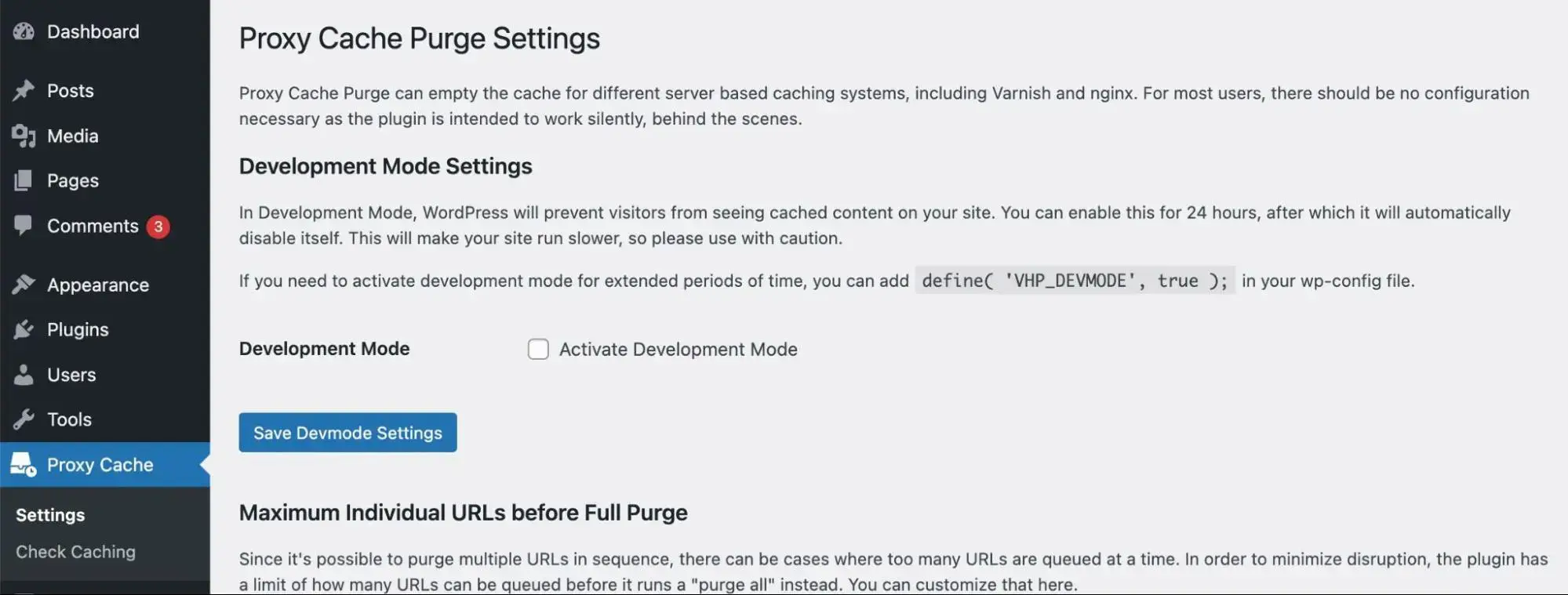 比如当你注册DreamPress计划时,你会收到一个内置的服务器缓存。在WordPress仪表板中,你还会看到预装了 Proxy Cache Purge 插件: