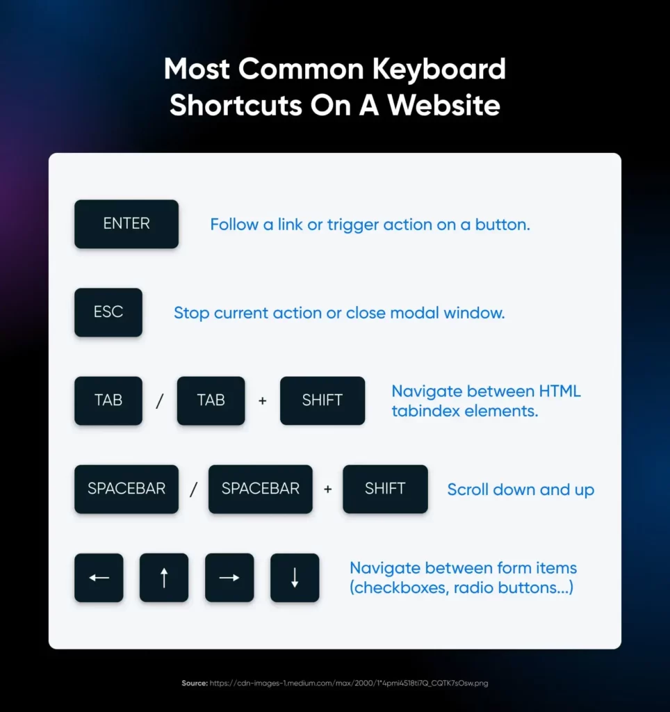 - 仅使用键盘即可浏览网站。