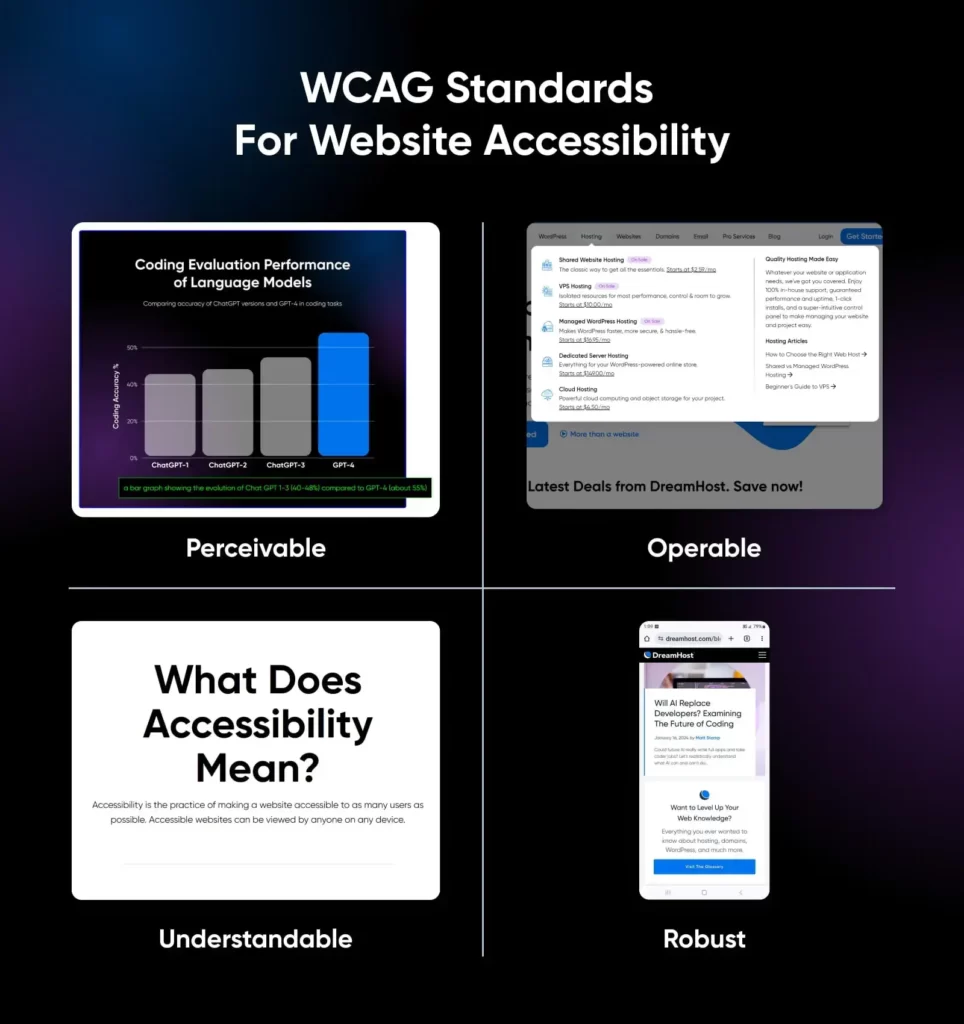 根据 WCAG,在创建无障碍网站时必须遵循四项原则。这些原则规定,网站必须