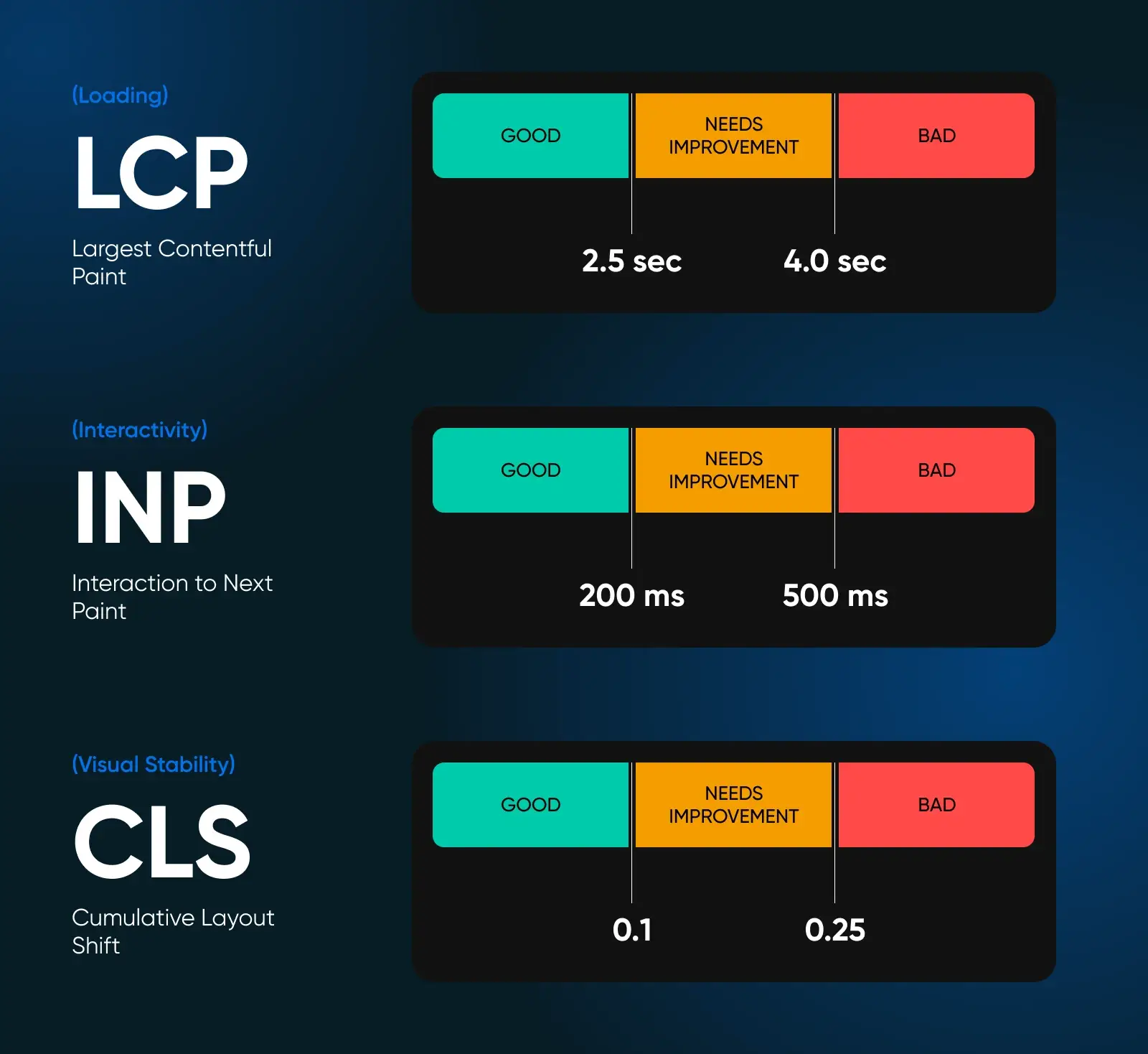 在这些指标上得分越高,您在谷歌上的排名就越靠前。让我们快速了解一下这些指标。