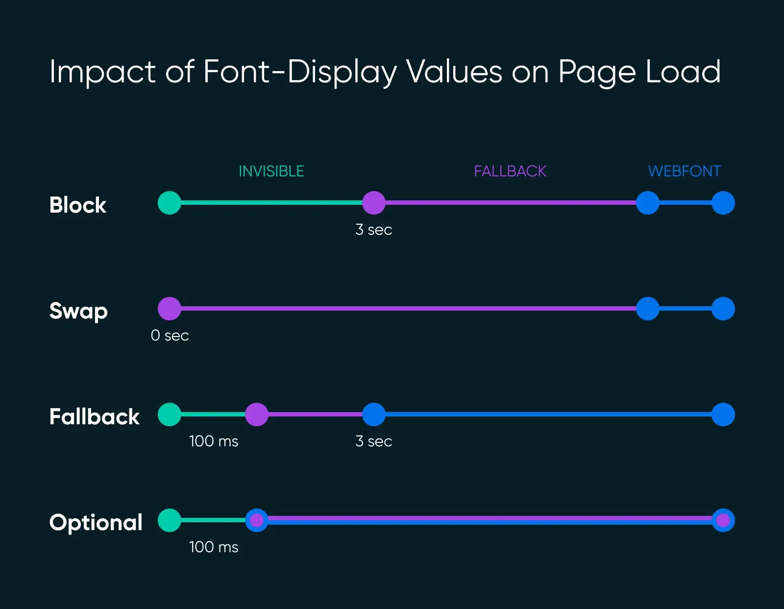 font-display property 有四种管理文本行为的方法:block, swap, fallback, 和 optional.