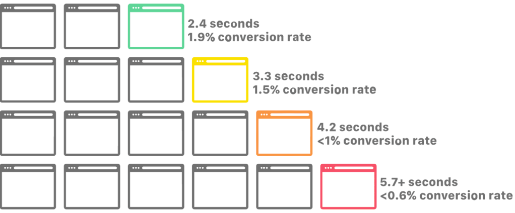 仅仅一秒钟的延迟就会导致转化率大幅下降。这是因为缓慢的加载时间会让用户感到沮丧,导致他们放弃任务,无论是向购物车添加商品还是填写表格。这对电子商务企业来说意味着潜在收入的巨大损失。