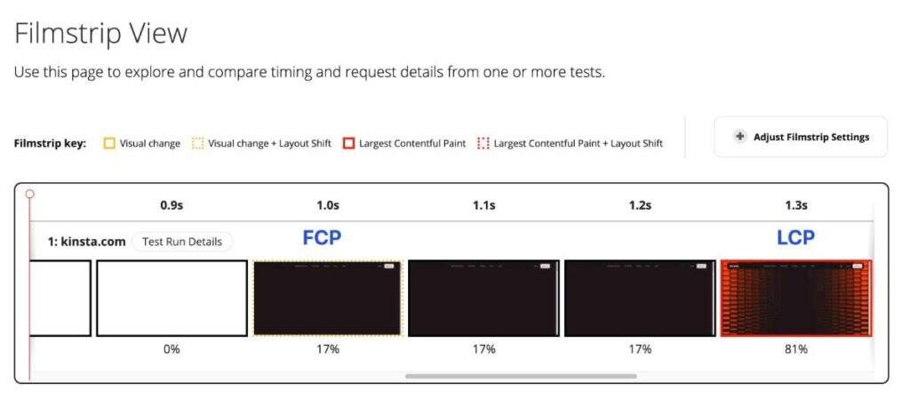 页面不同,FCP 时间也会不同,因此我们建议测试多个页面,以便对网站性能有一个良好的感觉。