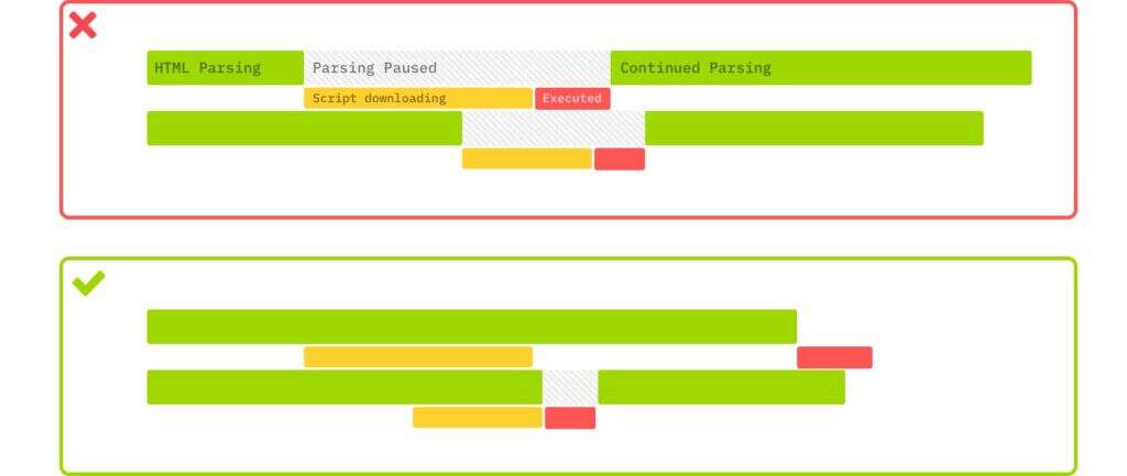 无论如何,您可能仍然需要在页面上加载至少一些 JavaScript。为了确保这些 JavaScript 不会干扰页面上方内容的加载,您可以采用两种常见的策略: