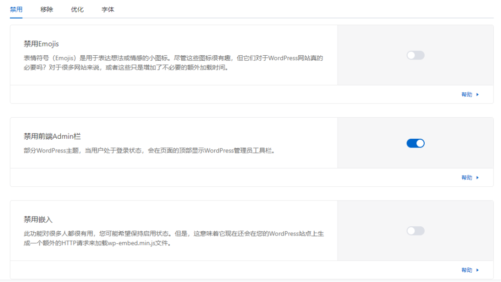 还有闪电博开发的 WordPress 性能优化插件 WPTurbo,也支持禁用emojis。且该插件还支持一系列的WP瘦身、速度优化、数据库优化和对象存储等功能。