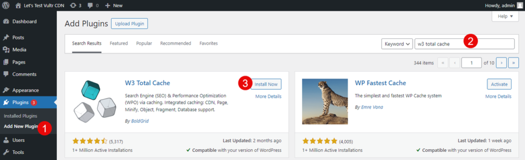 W3 Total Cache 是一款 WordPress 缓存插件,提供多种配置选项和全站 CDN 功能。与其他缓存插件类似,W3 Total Cache 对 WordPress 文件进行了最小化处理,以提高网站的加载时间和速度。请按照以下步骤在您的 WordPress 网站上安装该插件。