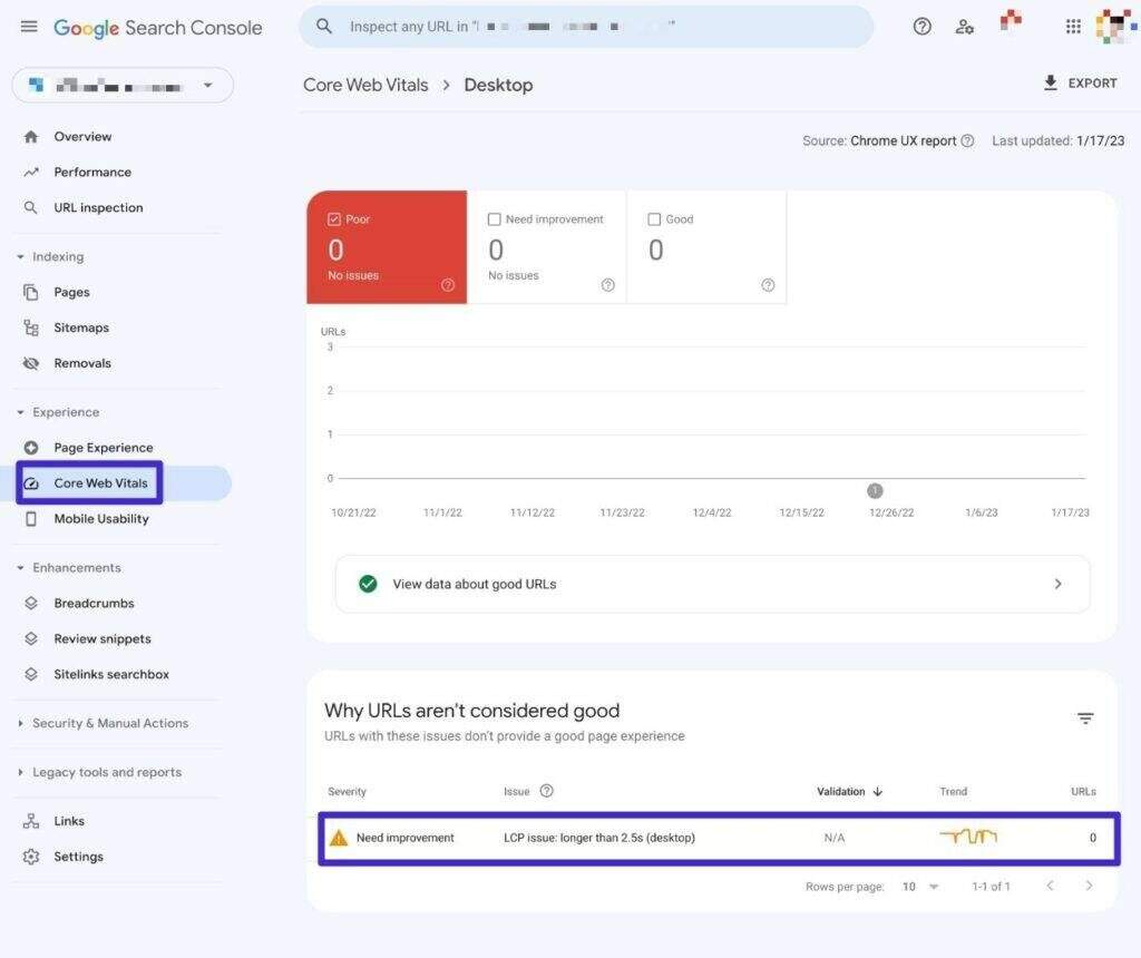 虽然Google Search Console不允许你测试单个页面的Largest Contentful Paint时间,但它对于评估整个网站的性能非常有用。