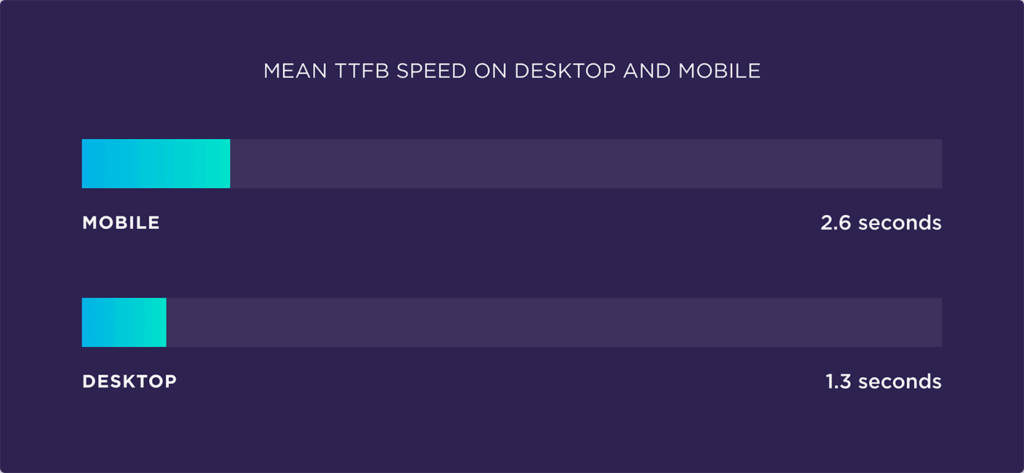 桌面上的平均TTFB速度为1.286秒,移动设备上为2.594秒。