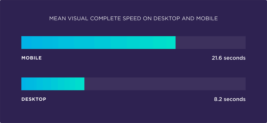 平均视觉完成速度在桌面上为8.225秒,在移动设备上为21.608秒。