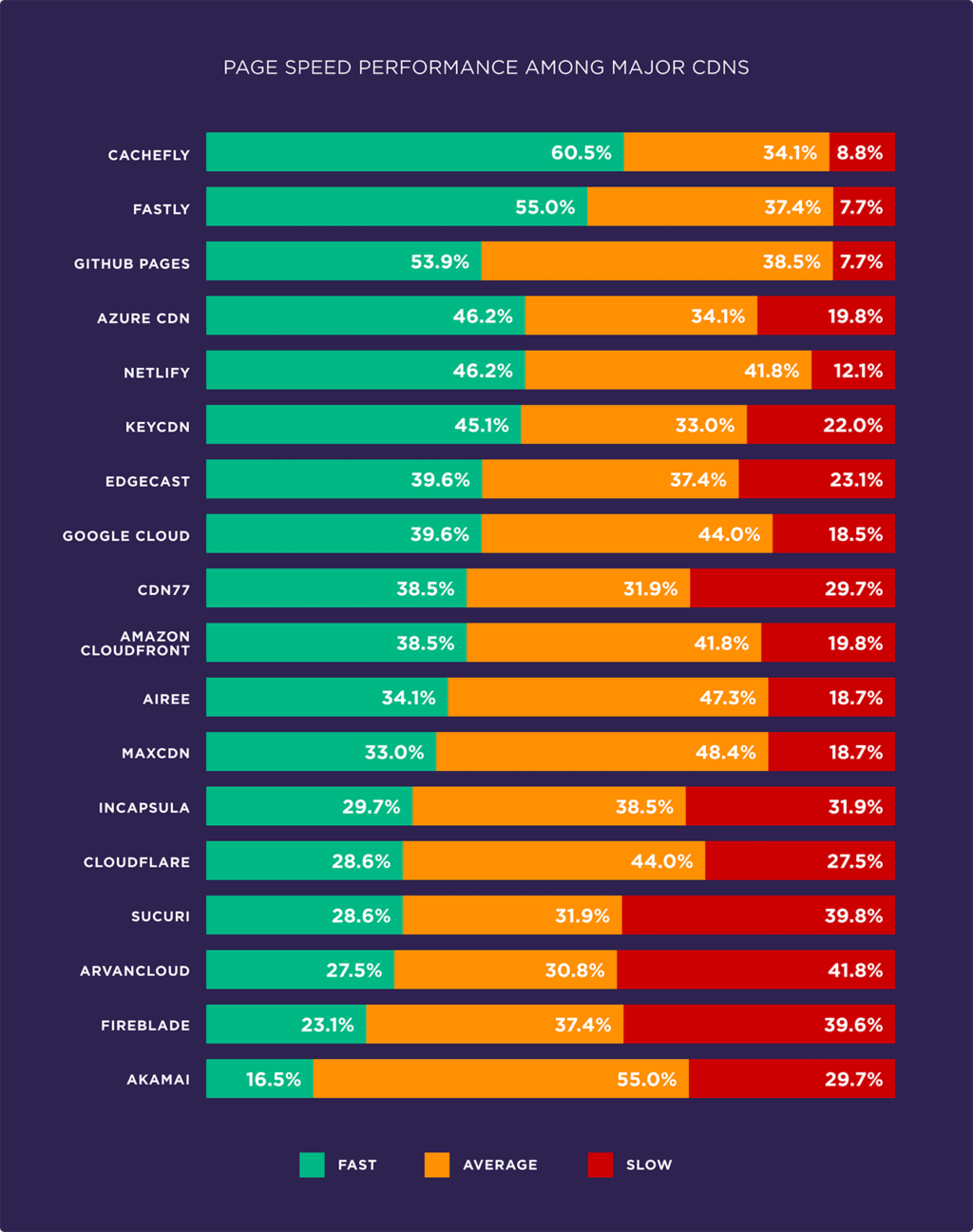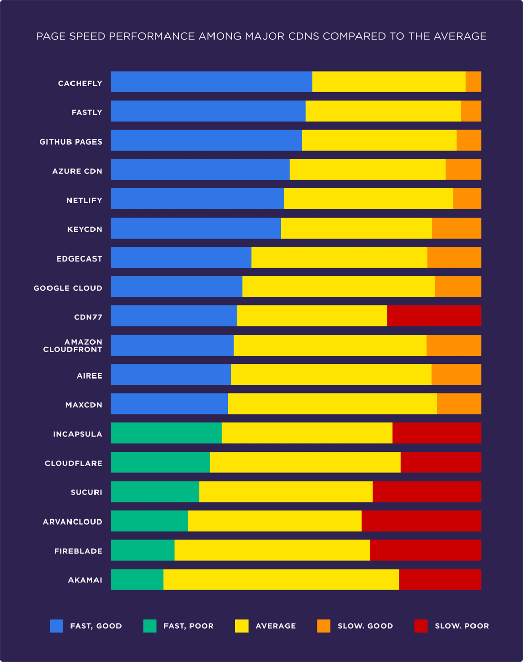 - 优秀: Airee、Amazon Cloudfront、Azure CDN、CacheFly、EdgeCast、Fastly、GitHub Pages、Google Cloud、KeyCDN、MaxCDN、Netlify