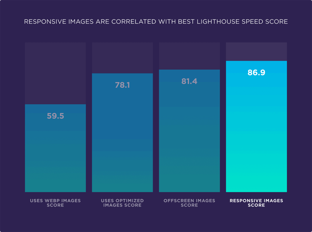 当我们比较这些不同的Lighthouse速度得分方法时,响应式图像名列前茅。
