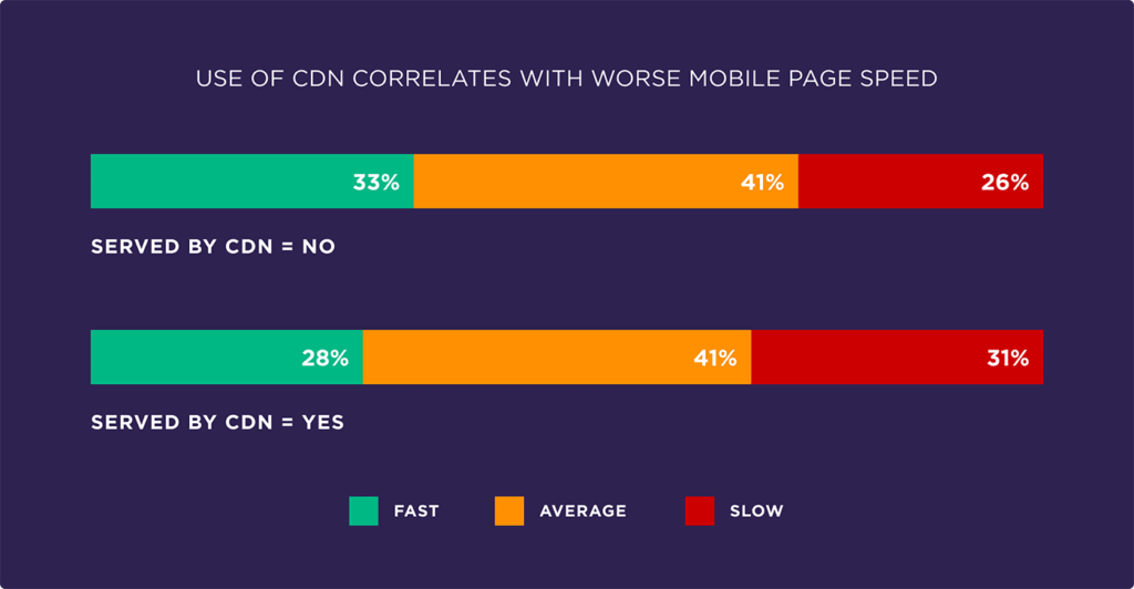 13. CDN使用与较差的页面速度性能相关。这可能是因为某些CDN的性能明显优于其他CDN。