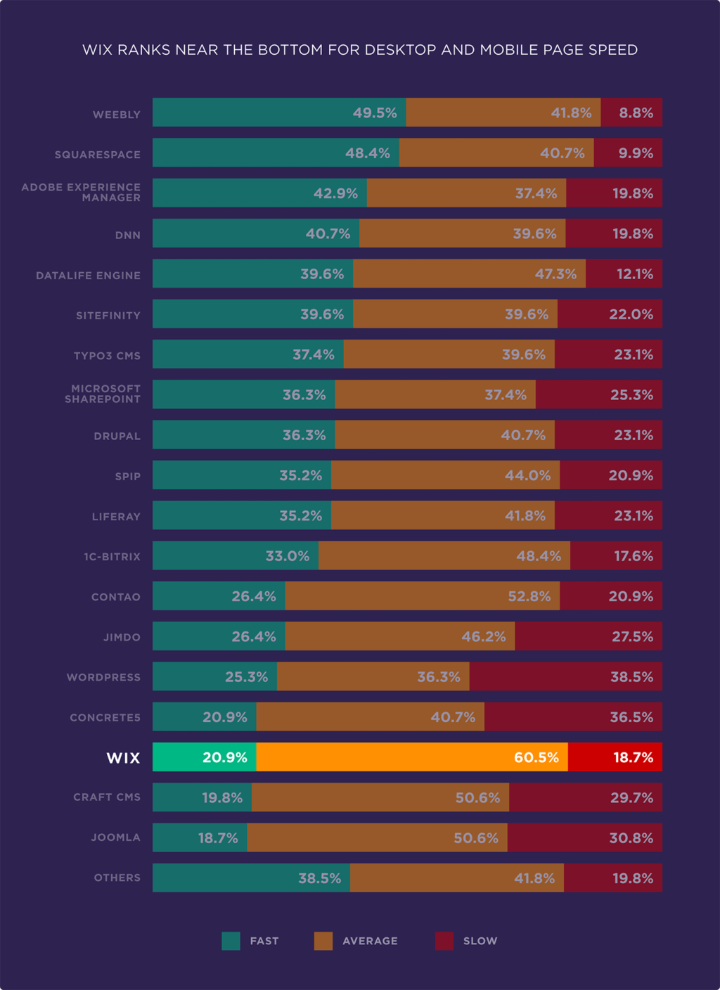 另一个流行的CMS,Wix,在桌面和移动加载速度方面的评价也很差。