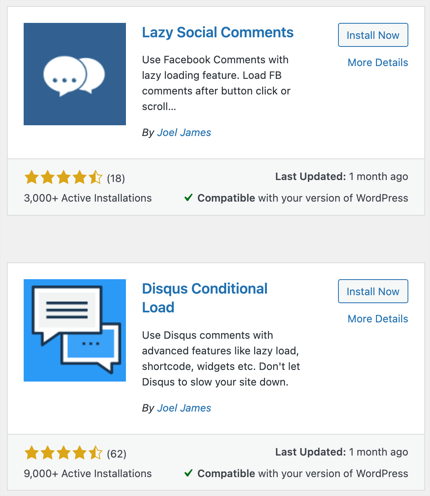一些网站所有者使用Facebook或Disqus评论而不是默认的WordPress评论表单。虽然这有助于减少评论垃圾邮件,但它会通过发送额外的HTTP请求以从第三方站点加载评论,从而极大地影响速度。如果您使用Facebook或Disqus评论,那么您可以使用不同的插件延迟加载它们。您可以使用Facebook的Lazy Social Comments插件和Disqus的Disqus Conditional Load插件。