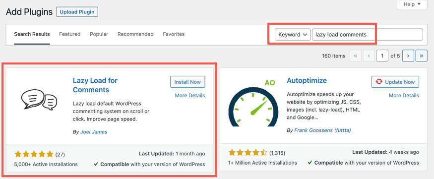 懒加载评论可以解决很多速度问题,包括懒加载gravatar图片。为此,您必须使用延迟加载评论插件并选择方法。登录到您的WordPress仪表盘部分后,转到“插件 > 安装插件”区域。搜索“lazy load comments”并向下滚动以找到lazy load comments插件。