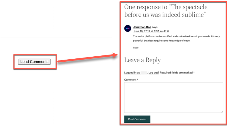 - On Click – 这将显示“Load Comments”按钮,用户可以单击它以显示评论和表单部分。