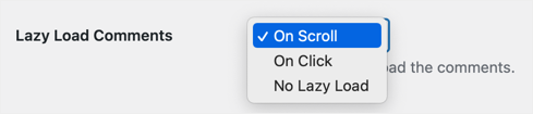 单击“lazy load comments”的下拉菜单以找到三个可用选项。