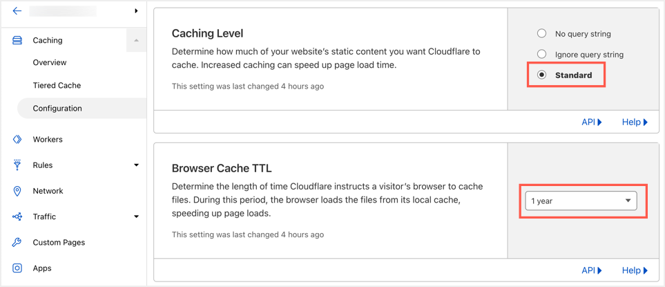 - 将浏览器缓存TTL从默认值4小时更改为1年。