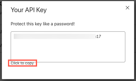 现在,您将获得您的全局API密钥,您可以将其复制并粘贴到WP Rocket的“Global API Key”文本框中。