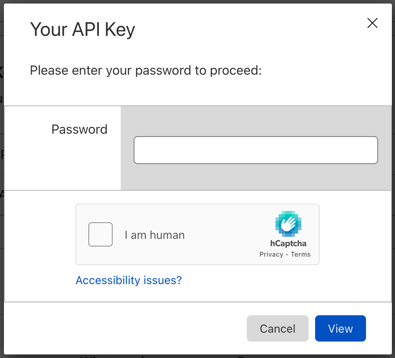 您需要输入您的Cloudflare帐户密码才能查看Global API Key。因此,输入您的密码,然后单击弹出窗口中的“View”按钮。