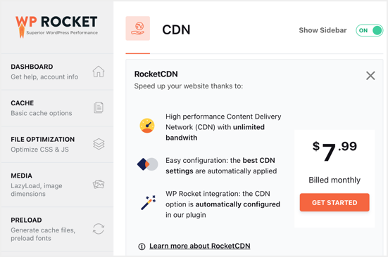 WP Rocket还提供自己的RocketCDN,您可以将CDN部分集成到WP Rocket设置中。RocketCDN来自StackPath,您每月需要7.99美元才能开始使用这项仅限高级服务。要使用RocketCDN,您需要通过在您的DNS区域中设置CNAME来创建CDN重定向,并在CDN设置页面添加CNAME。但是,Cloudflare是一个免费的CDN,您无需创建CNAME记录即可在WordPress中使用Cloudflare。