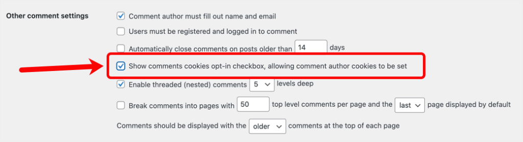 您可以在“设置 > 讨论”部分下的浏览器选项中启用或禁用保存名称/电子邮件/网站。