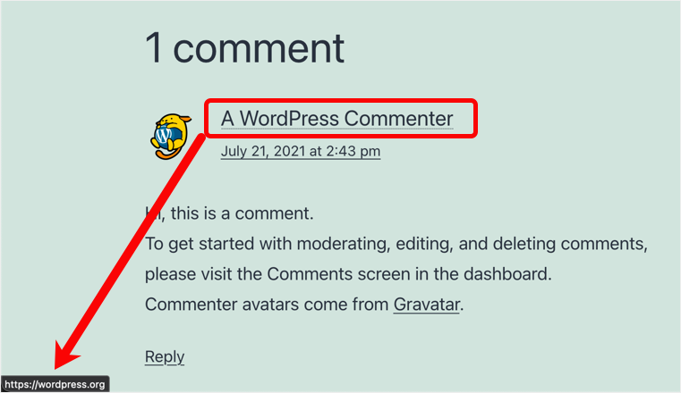 几乎75%的用户留下评论只是为了提供他们的网站URL并获得反向链接。默认情况下,WordPress将rel="external nofollow ugc" 参数分配给注释链接,将它们指示为用户生成的内容。但是,这些链接仍然会损害您的网站,尤其是当它们与您的网站无关时,例如色情链接。用户在您的网站上发表评论后,WordPress将通过链接名称和URL字段来显示已批准的评论。