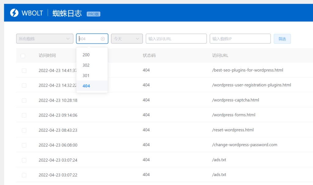 蜘蛛统计插件日志列表的404错误和30x重定向故障