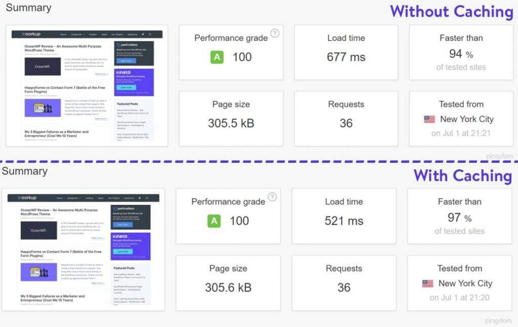 即使没有启用缓存,上述站点的性能也非常出色,因为它经过了合理的优化。但是,启用缓存后,它的性能提高了23%。如果您要为成千上万的唯一访问者提供服务,那么这些加载时间就会加起来。