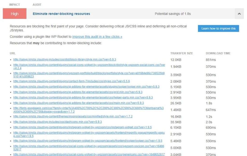 进一步向下滚动将向您展示如何提高网站的性能。扩展每条建议将为您提供有关可以改进的地方和方式的更多详细信息。
