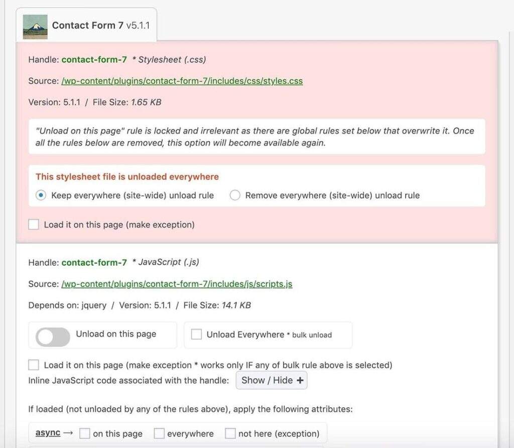 大多数WordPress主题和插件资源经常在所有页面上加载和运行,即使在某些页面上不需要它们。例如,联系表单插件可以在每个页面上加载其资产,而不仅仅是在具有联系表单的页面(例如联系页面)上。