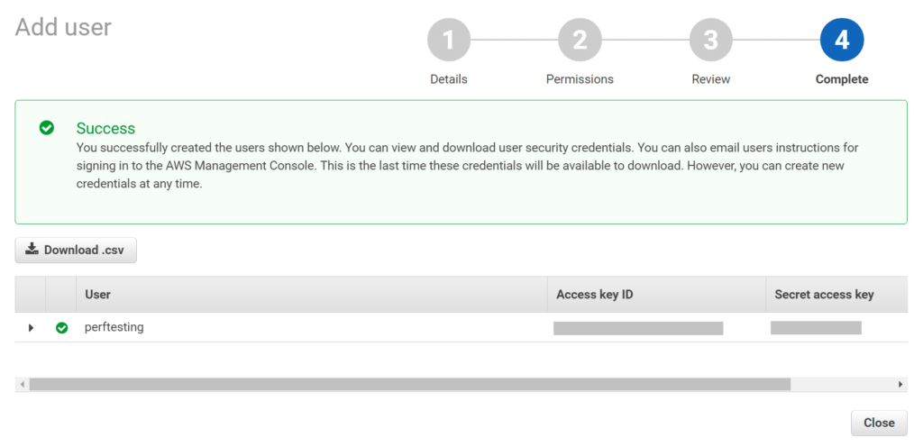 在最后一个屏幕上,您需要将您的访问密钥ID和私密访问密钥复制到一个安全的地方,因为您需要将其返回到您的WordPress仪表盘中。