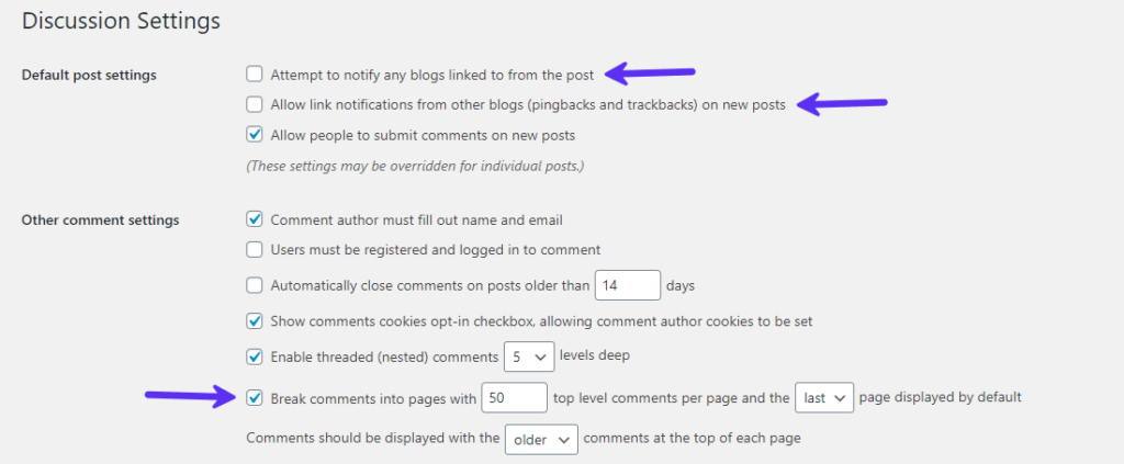 如果您的帖子或页面上有很多用户评论,那么WordPress还为您提供了将它们分成更小的块的选项。同样的设置也适用于分解产品页面上的评论。