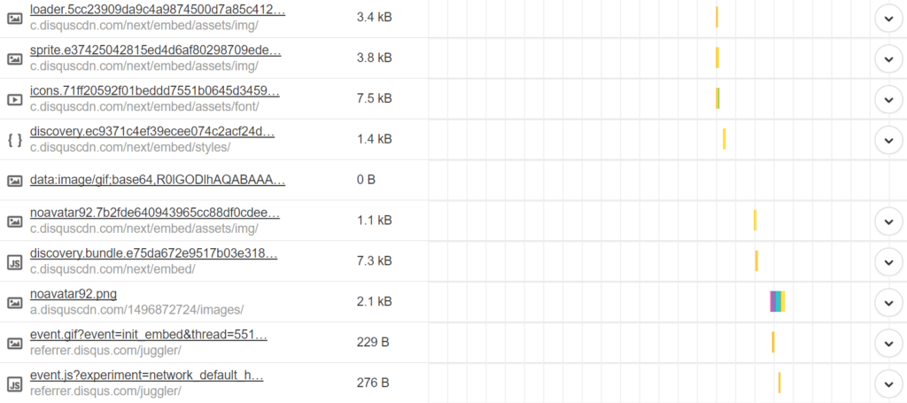 如果您是大型商业网站,您可能还需要付费才能删除Disqus广告,如果您不这样做,最终会在您的网站上生成更多请求。您可以在下面看到它生成的一些请求的一小段。