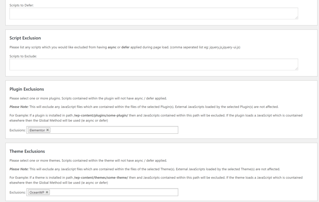 再往下,您还可以手动包含或排除特定的脚本被延迟,包括一个很好的用户友好功能,让您可以定位在您的网站上活跃的特定主题或插件: