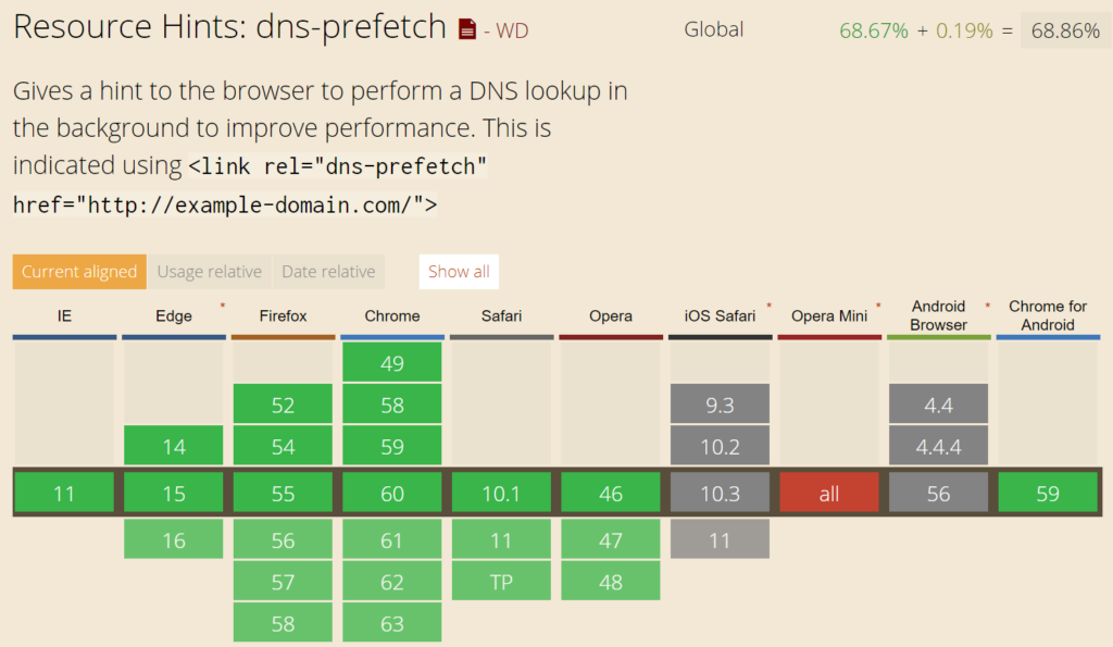 除iOS Safari、Opera Mini和Android浏览器外,所有主要浏览器也支持DNS预取 。