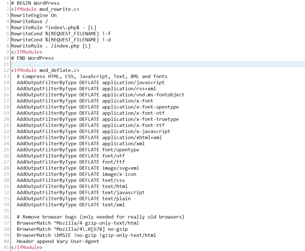 仅在.htaccess文件的现有指令之后添加上面的代码。保存文件,然后检查它是否在您的服务器上启用了GZIP压缩。
