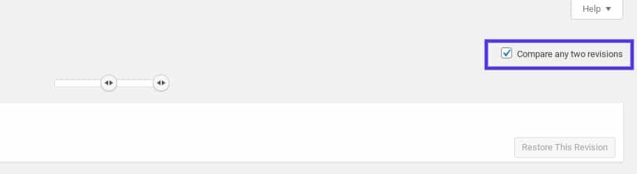 默认情况下,WordPress按顺序显示文章或页面的修订。但是,如果您想查看或比较非顺序更改,您可以通过选择屏幕顶部的比较任意两个修订选项来实现: