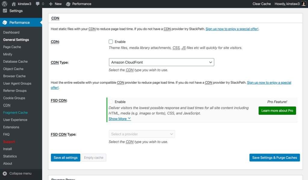 反向代理位于您的Web服务器和WordPress之间,可用于对传入请求执行各种基于逻辑的操作。W3TC支持Varnish,这是一种流行的“HTTP加速器”,用于缓存和提供数据,目的是减少后端负载。