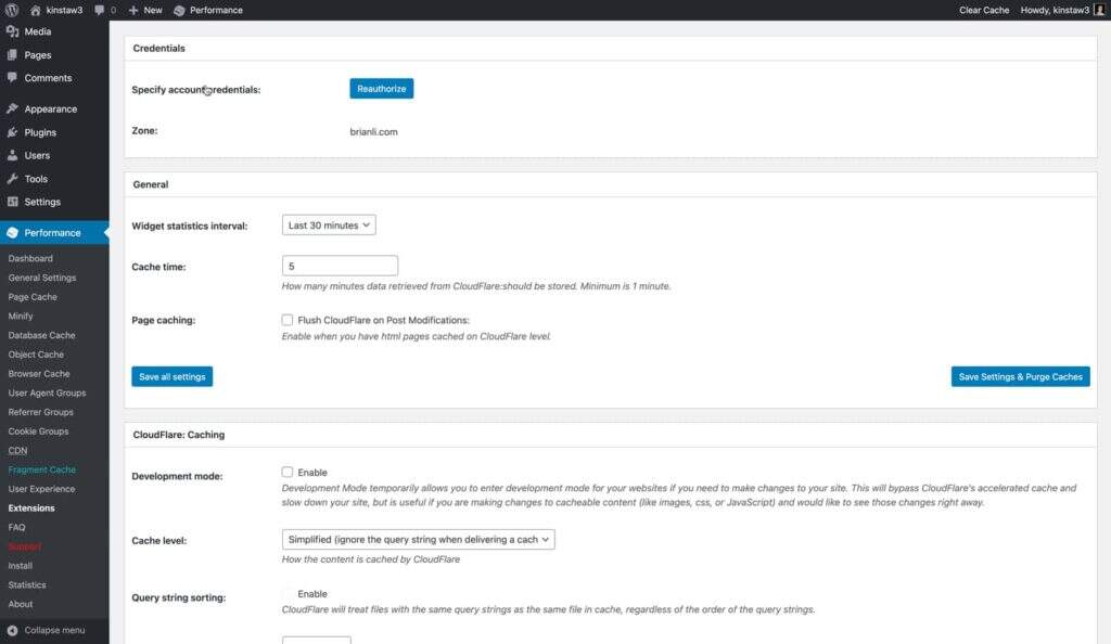 让我们回顾一下W3 Total Cache中的Cloudflare设置