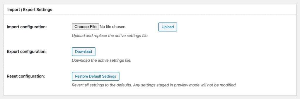 完成设置配置后,您可以使用W3TC的“Import/Export”功能来创建配置的备份。W3 Total Cache有很多设置,因此能够导出完整备份让您高枕无忧。此外,它允许您轻松地跨多个站点复制自定义W3TC配置,而无需手动配置任何内容。