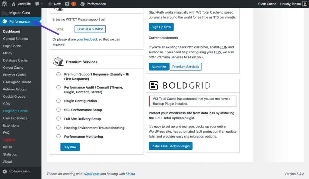 还有一个专业版的W3 Total Cache,可以在BoldGrid的网站上购买。专业版带有一些附加功能,如REST API 缓存、谷歌地图缓存和其他扩展。在本文中,我们将使用WordPress插件库中的免费版本。