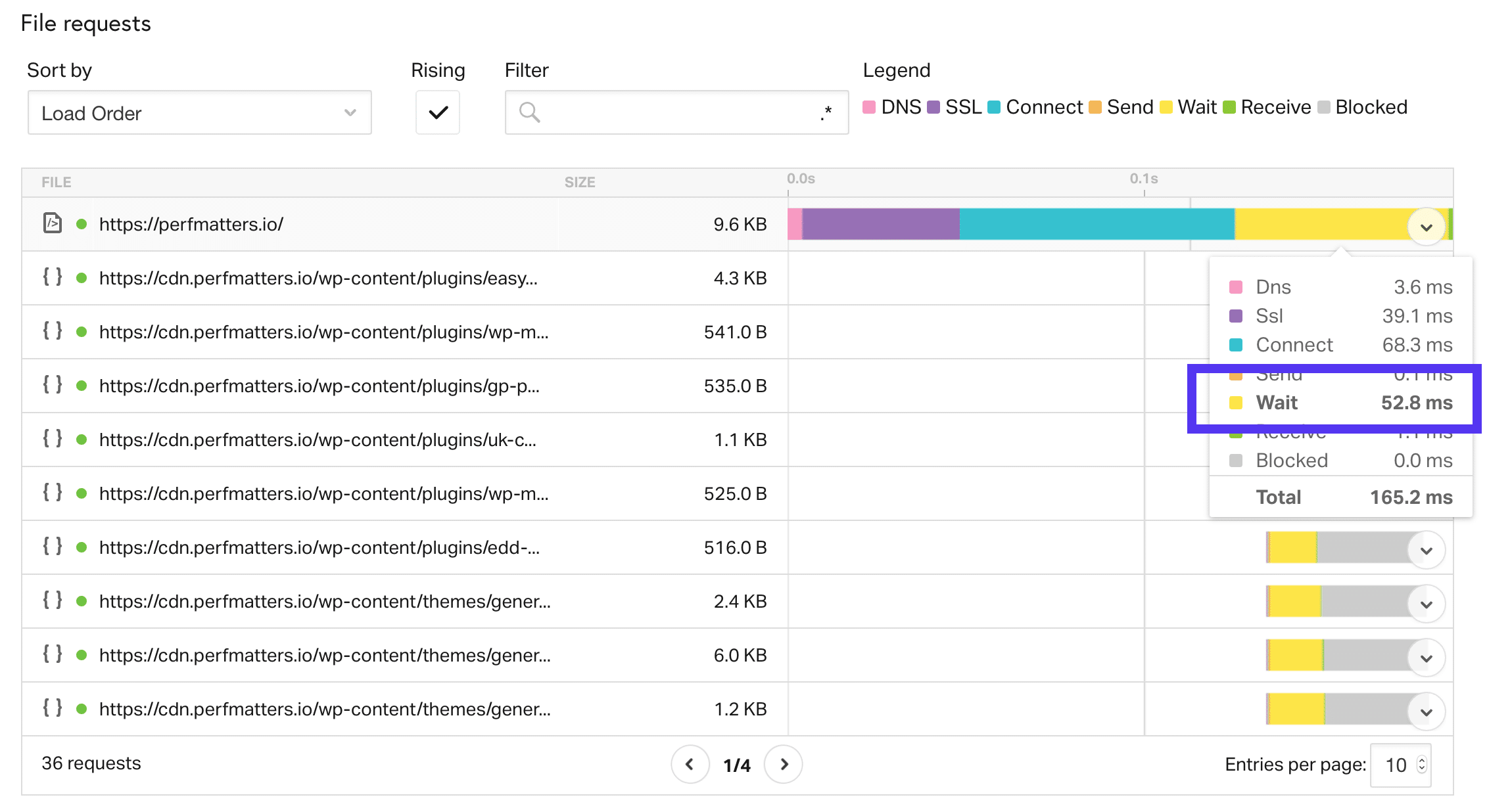 发生的主要原因有三个:DNS缓存、CDN缓存和WordPress缓存。这就是为什么你应该总是多次运行测试。当然,对第三方资源和 API 的外部调用也会对此产生影响。在我们的瀑布分析中进一步了解原因。