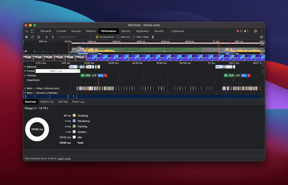 DevTools中记录的页面加载速度