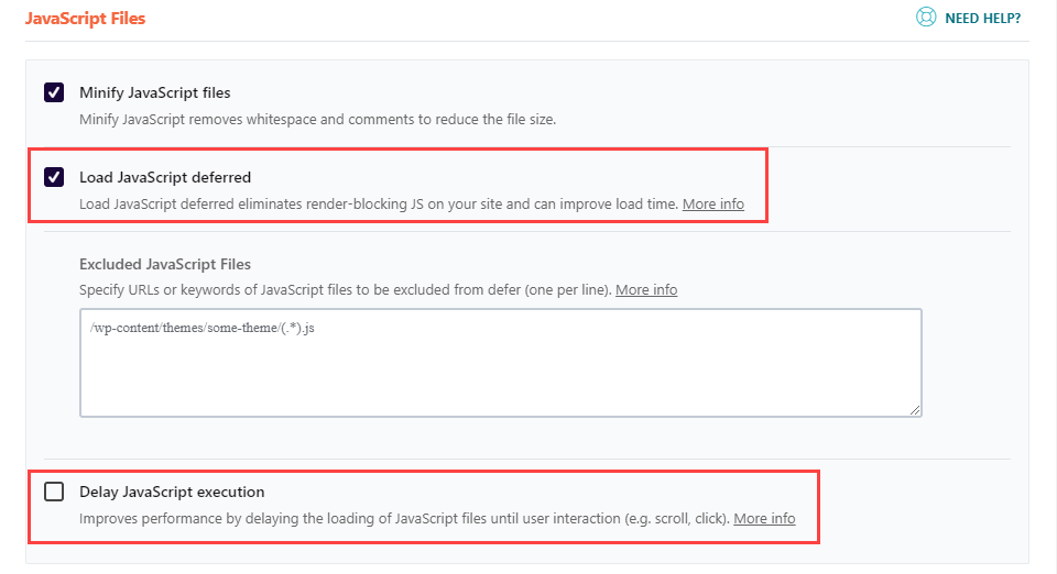 此外,WordPress用户可以使用W3 Total Cache或WP Rocket等缓存插件(或站点优化插件)来处理此问题。通常这些插件有一个简单的切换来延迟渲染阻塞资源。
