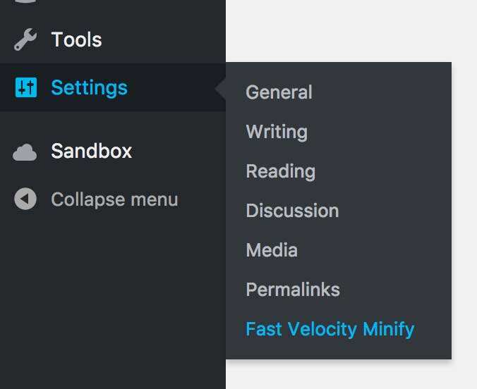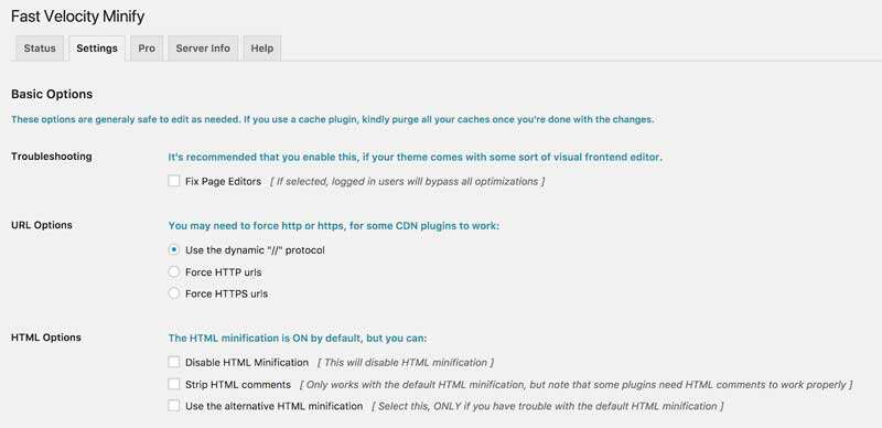如果您是更有经验的用户,该插件确实提供了一些高级设置。您可以通过在 WordPress 中转到“设置”>“Fast Velocity Minify”找到设置选项 。