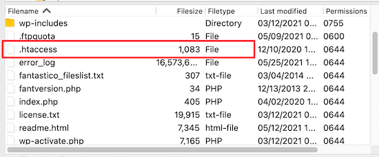 连接后,您可以在网站的根文件夹中找到.htaccess文件。