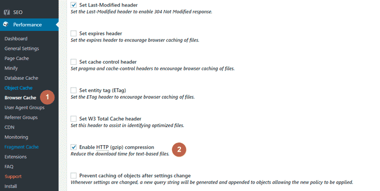 W3 Total Cache是WordPress平台上最常用的缓存插件之一。 如果您使用此插件,则可以通过此插件启用Gzip压缩。 按照以下步骤使用WordPress插件-W3 Total Cache启用Gzip压缩 – W3总缓存