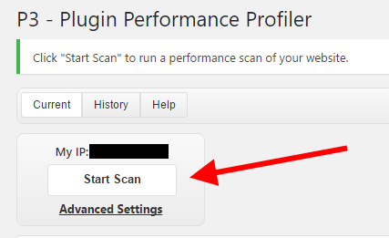安装并激活后,您可以访问“WordPress仪表盘”-“工具”-“P3 Plugin Profiler”,只需单击“Start Scan”按钮,然后会提示“auto scan”:
